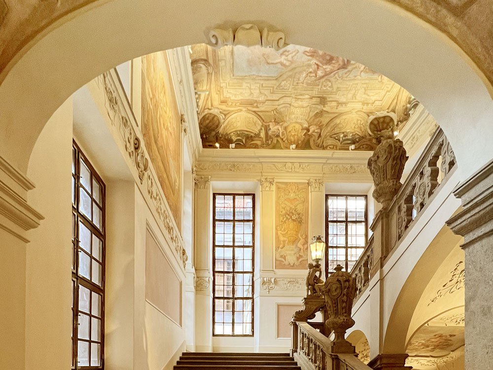 We now offer audio guides in three more language versions. When passing through the representative rooms, they will be able to listen to the dialogue of the atlantes not only in Czech and English, but also in: German, Spanish, French and Italian.