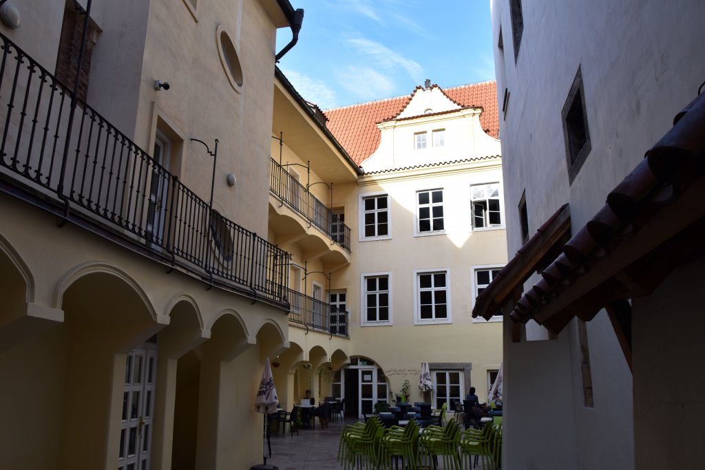 The House at the Golden Ring is situated in close proximity to the Týn Cathedral and Old Town Square. It is a unique Gothic-Renaissance building with preserved fragments of late Gothic wall paintings. The oldest records of the house date back to the 14th century, and it acquired its present appearance in the 2nd half of the 15th century. The house is part of the Týn Court (Ungelt), originally a fortified merchant's court, declared a cultural monument.