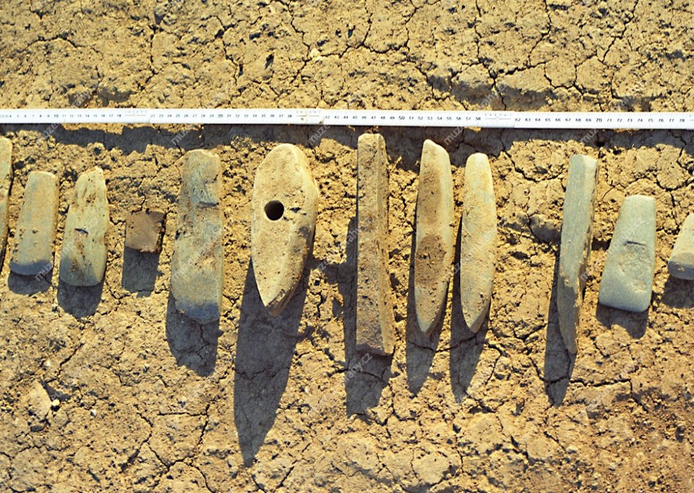 Ve výklenku ve stěně jedné ze sídlištních jam z mladší doby kamenné byla ukrytá skupinka broušených kamenných nástrojů – sekerky, klíny a také jejich polotovary a brousek. Zlomky nádob kultury s vypíchanou keramikou nalezené ve výplni jámy datují tento nález do období 4800–4500 př. n. l.