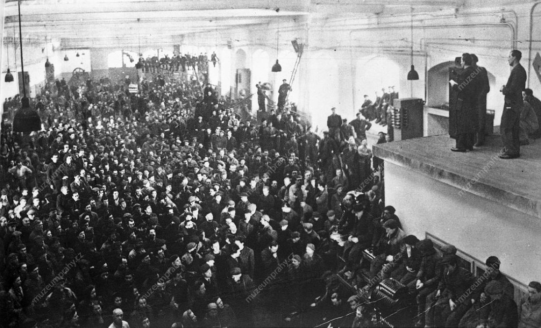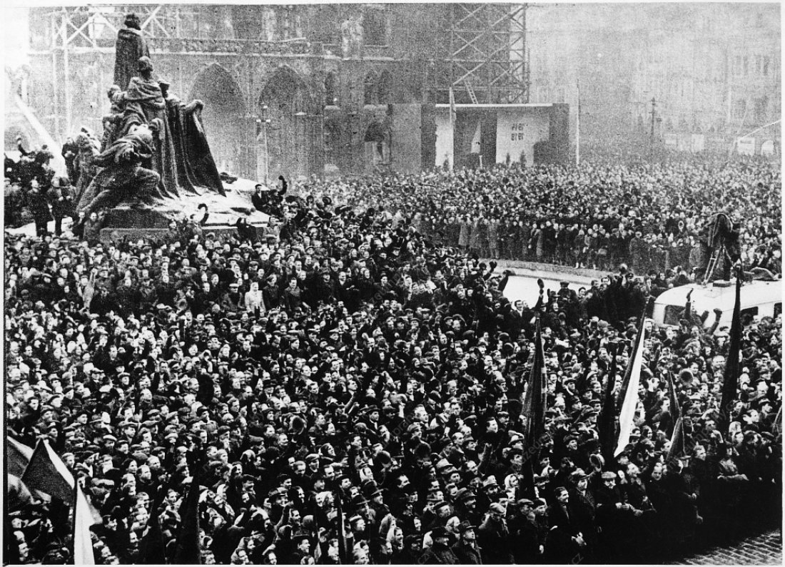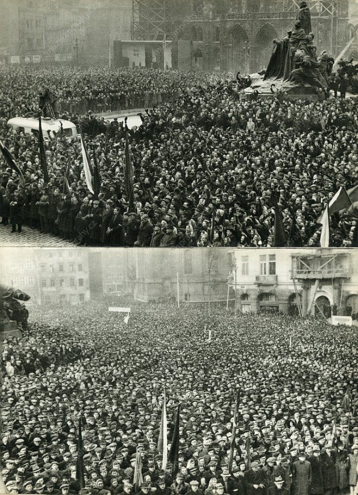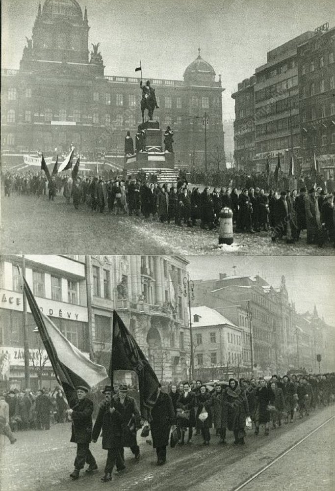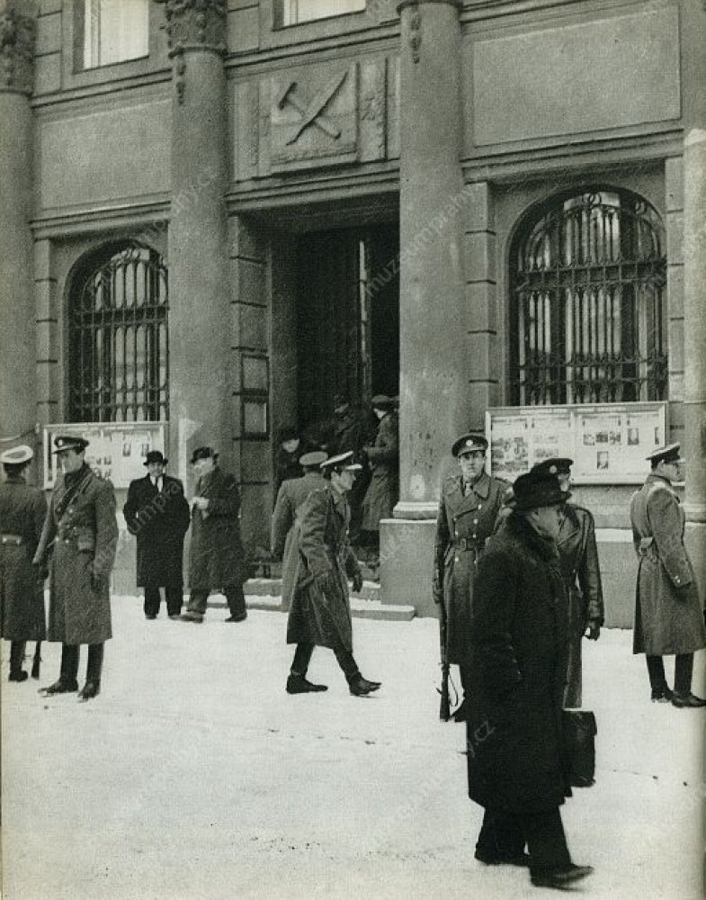 The communist repressions were now aimed against the People’s Party as well. Under threat of arresting the ministers who submitted resignations, the president was urged to accept the resignation of the government. At 12 o’clock, the one-hour general strike began which was organised by trade unions and works committees under the patronage of the Communist Party. A procession formed by tens of thousands of workers to support Klement Gottwald marched through the centre of Prague. A dispute culminated among the social democrats because of diverging opinions on the support of the communist coup. Eventually, the communists occupied their secretariat and Lidový dům (People’s House), and the party accepted participation in the future government under pressure.