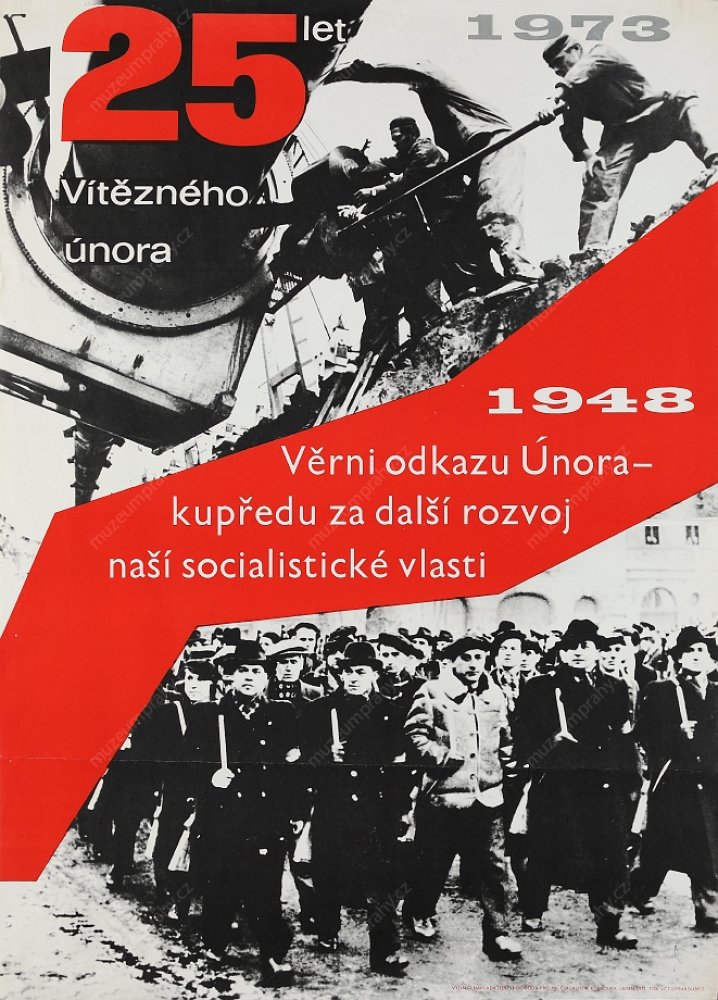 Poster for the 25th anniversary of Victorious February (1948–1973), MMP H 088 949/006; Poster for the 25th anniversary of Victorious February (1948–1973). Created by Vl. Hájek, MMP H 091 120/008.