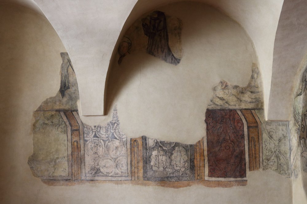 The beginnings of the House at the Golden Ring are related to its immediate proximity with the Tyn Court which in the Middle Ages served as a fortified refuge for foreign merchants arriving in Prague. Under the protection of Bohemian princes and kings, the merchants could lodge as well as store, declare, and sell their goods there. In the past, there was a defence trench as part of the fortification on the site of today's House at the Golden Ring. In the 13th century, the trench was backfilled and replaced by a barrier wall. Its fragments with embrasures have survived in the house's interior.