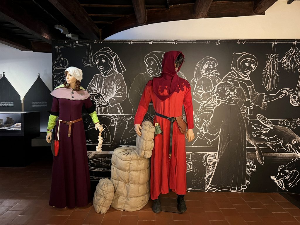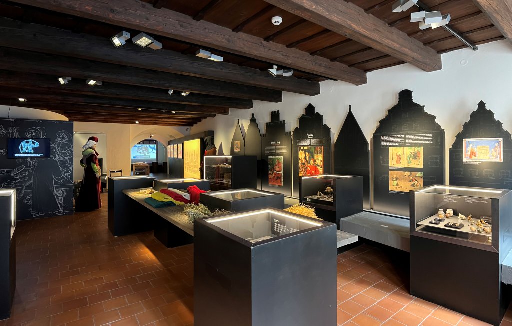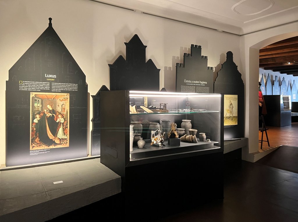 Čekala na Vás pestrá kolekce exponátů – od součástí oděvů, šperků a předmětů denní potřeby přes zařízení měšťanských domácností, nástroje a doklady obchodu až po symbolické artefakty, výzbroj či předměty sloužící k zábavě.