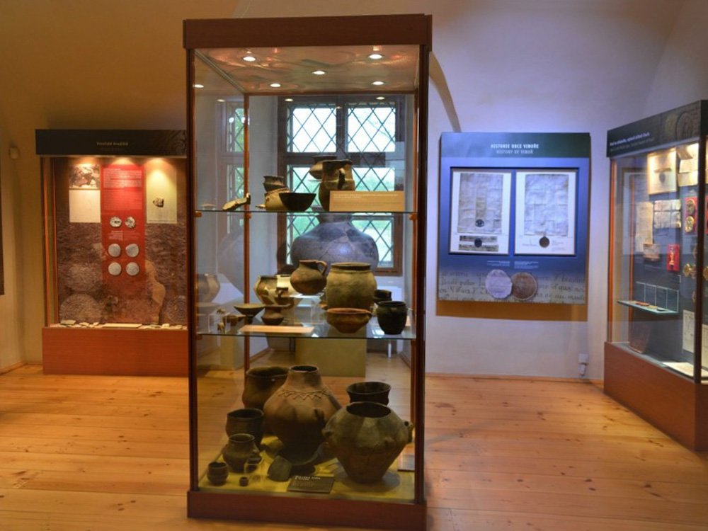 Vinoř je staré historické sídlo, první písemná zmínka o vsi pochází již z roku 1088, kdy král Vratislav II. daroval Vinoř (UINAR) Vyšehradské kapitule. Expozice představuje tyto první písemné zmínky o Vinoři, nejstarší držitele Vinoře, kopie významných listin, středověká pečetidla, repliky dobových mincí či repliky nalezených kachlí z 15. století. Za pozornost stojí vystavované archeologické nálezy z raně středověkého hradiště v bývalé zámecké oboře, pravěká sídla a hroby, nebo zásobnice, největší nádoba z bohatého kostrového hrobu v Bohdanečské ulici – z bylanské kultury ze starší doby železné.