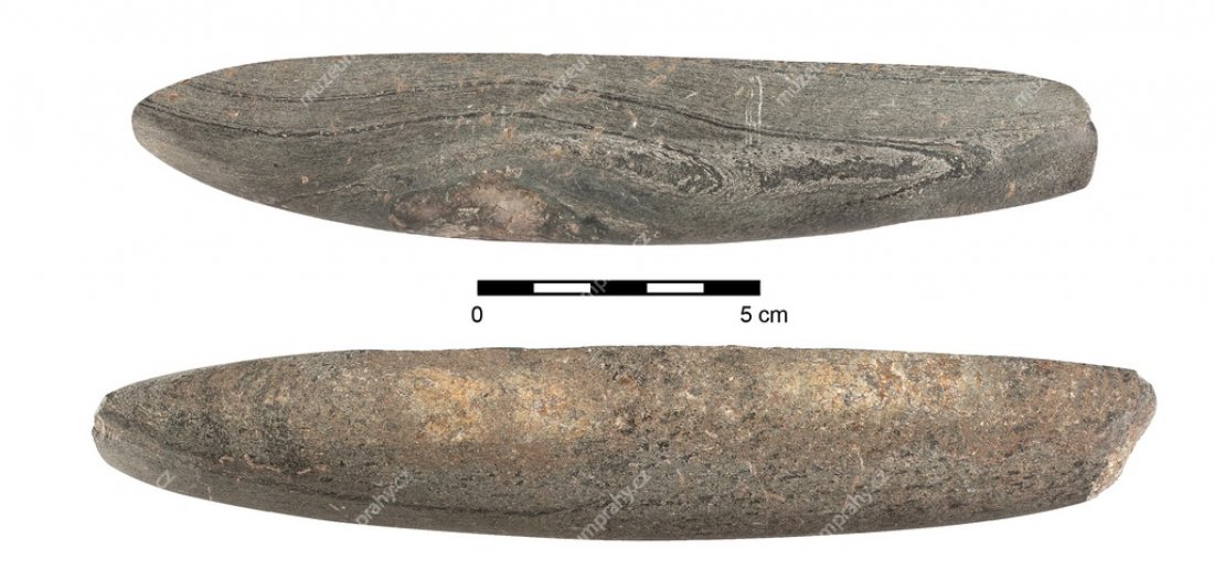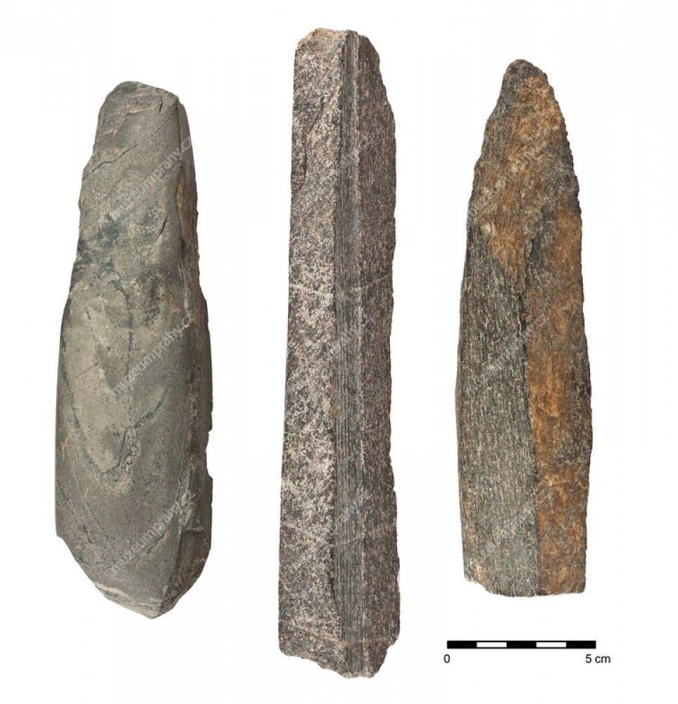 Ve výklenku ve stěně jedné ze sídlištních jam z mladší doby kamenné byla ukrytá skupinka broušených kamenných nástrojů – sekerky, klíny a také jejich polotovary a brousek. Zlomky nádob kultury s vypíchanou keramikou nalezené ve výplni jámy datují tento nález do období 4800–4500 př. n. l.