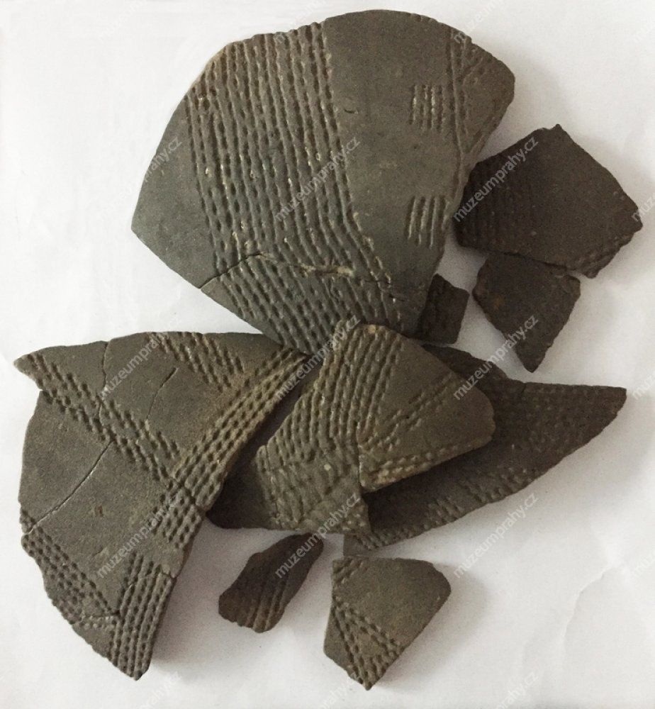 Obr. 9: Zlomky nádob kultury s vypíchanou keramikou z mladší doby kamenné datují nález do období 4800–4500 př. n. l.