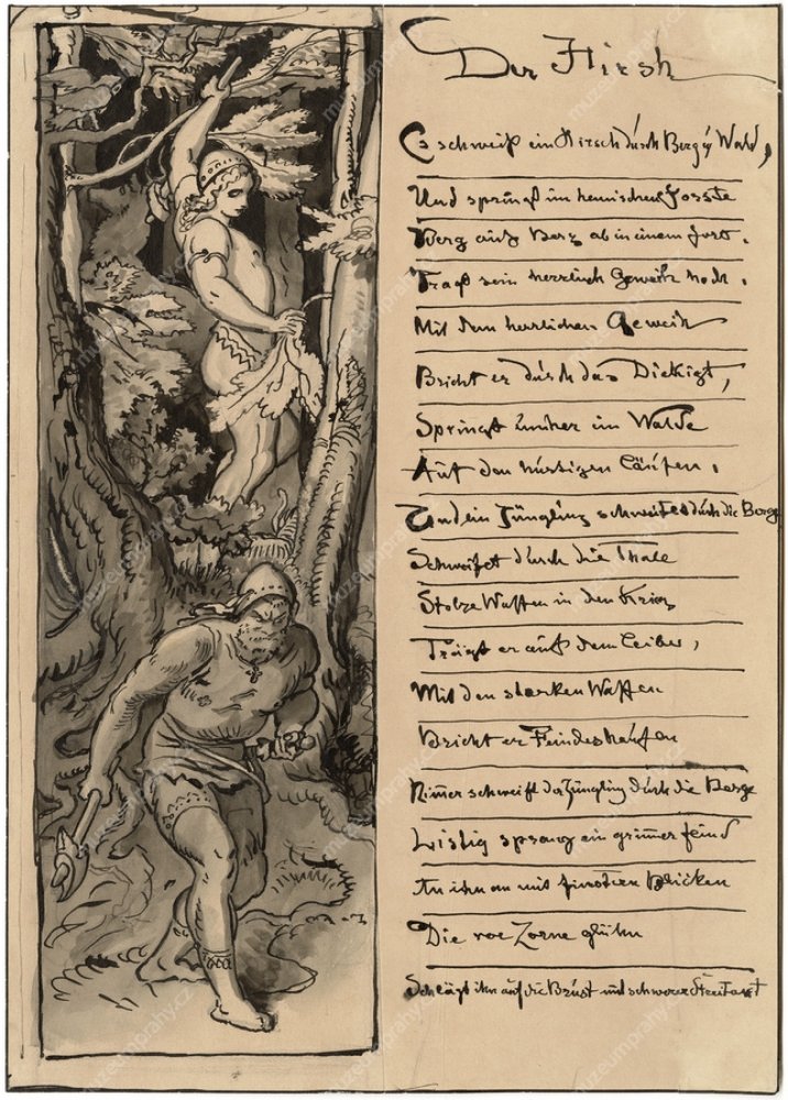 V souboru původních Mánesových děl zakoupených v roce 1881 měly významné místo ilustrace k Rukopisům královédvorskému a zelenohorskému, MMP H 62-66.