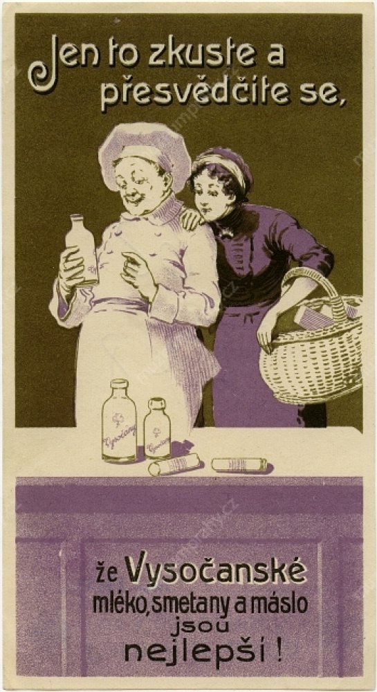 Reklamní účtenka Parní mlékárny ve Vysočanech, c. k., dvorních a komorních dodavatelů, počátek 20. století, MMP H 087 659.