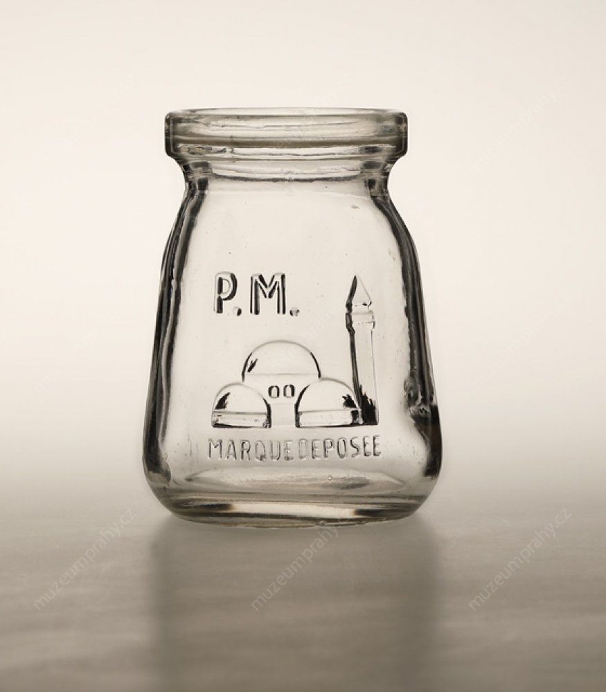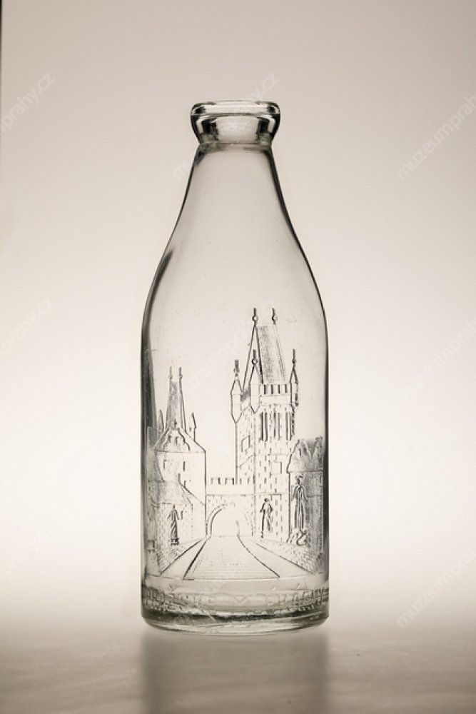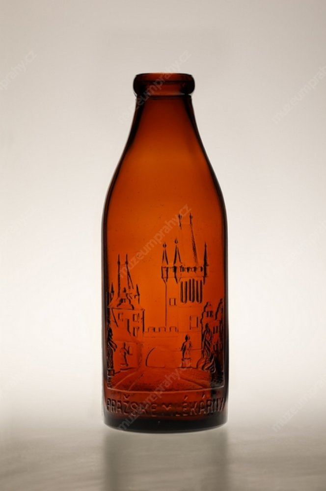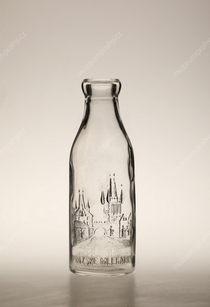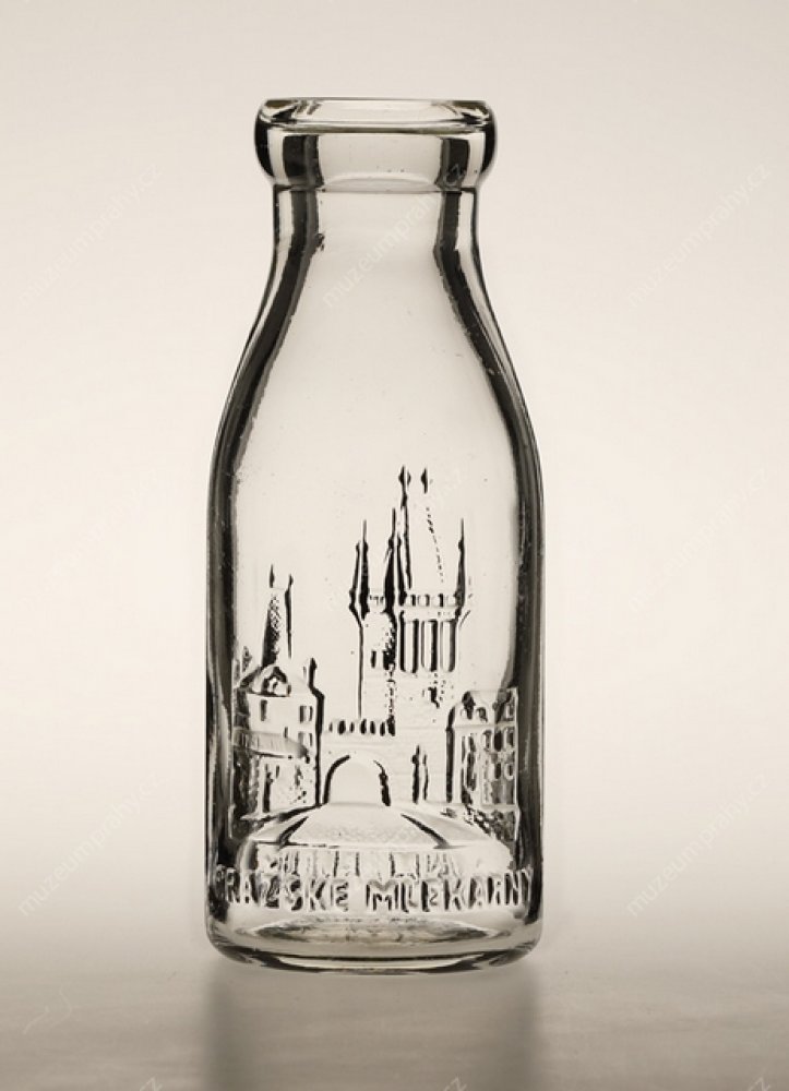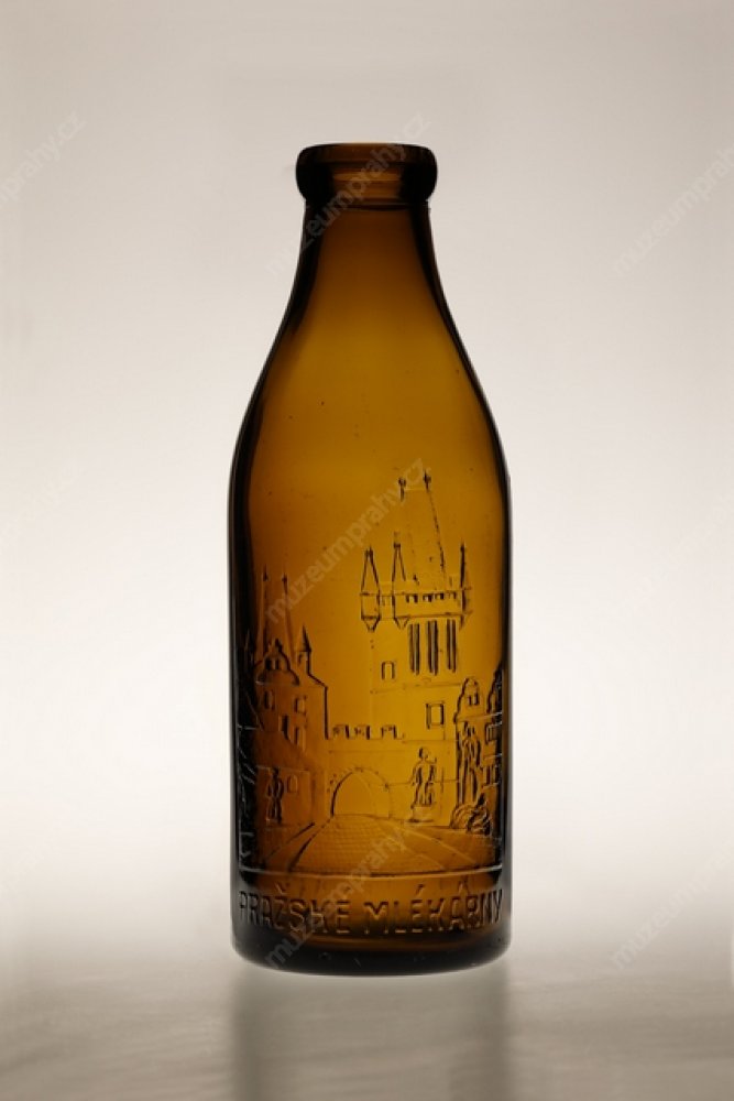 Pozoruhodný typ lisovaného obalového skla představují láhve Pražských mlékáren, zdobené charakteristickým reliéfním vyobrazením Malostranských mosteckých věží. Ve 30. letech 20. století se tento symbol stal ochrannou obchodní značkou volného syndikátu osmi pražských soukromých podniků a v období 1948–1953 jej bez výraznější obměny převzal národní podnik Pražské mlékárny. Ve sbírkách Muzea hl. m. Prahy se k dnešnímu dni dochoval soubor jejich barevně a objemově rozlišených variant z období meziválečného i z let po roce 1948.