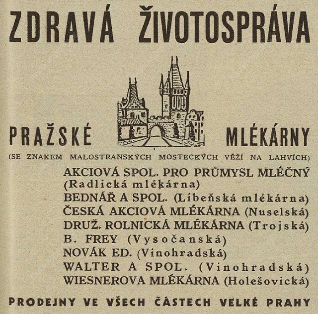 Inzerát Pražských mlékáren z periodika Letem světem 37, 28. 6. 1932.