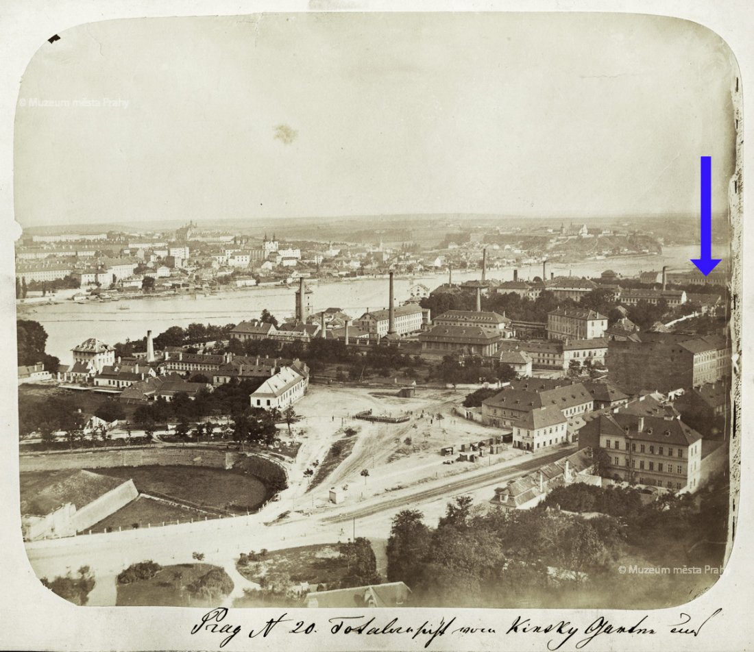 Továrna ležela v nebezpečné oblasti poblíž řeky Vltavy, což přineslo své následky za katastrofálních povodní roku 1890. Nic na tom nemění skutečnost, že snímek s dvěma muži na prámu – v pozadí s panoramatem Nového Města (vlevo s Palackého mostem) – působí poklidně, až romanticky.