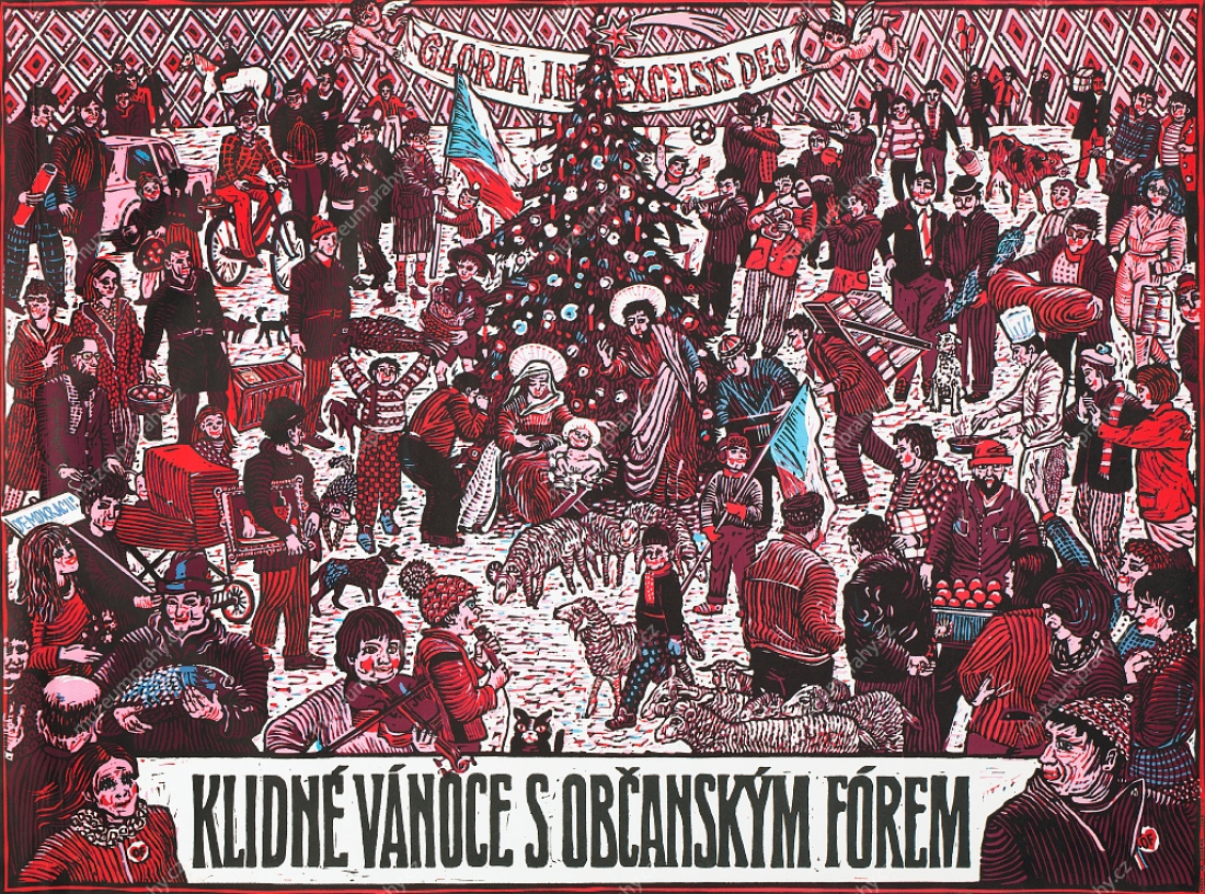 Nálada vánočních svátků se zde podivuhodným způsobem propojila s všeobecnou radostí ze znovunabyté svobody. Občanskému fóru připisuje tento plakát téměř mesiášský úděl. Hvězda betlémská zvěstuje slávu Občanskému fóru.