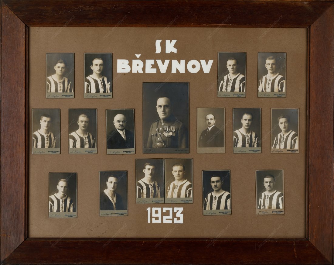 Tablo SK Břevnov z roku 1923 s předsedou klubu Aloisem Löflerem, MMP H 340 486.