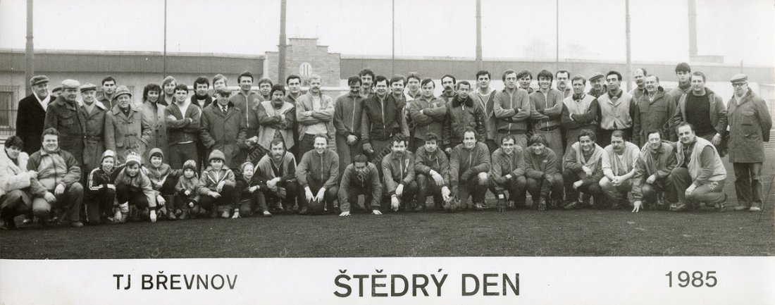 Tradiční vánoční setkání hráčů a příznivců fotbalového klubu TJ Břevnov na domácím hřišti, 24. prosince 1985, MMP H321659.
