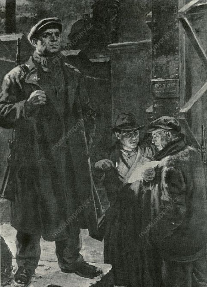 Plakát k 27. výročí Vítězného února (1975), MMP H 103 168/001; Reprodukce obrazu Viléma Nowaka Únor 1948, olej na plátně. Národní galerie v Praze. Vydal Odeon, nakl. krásné literatury a umění v Praze v roce 1978 při příležitosti 30. výročí Vítězného února. Tisk Severografia Děčín, MMP H 117 165/001.