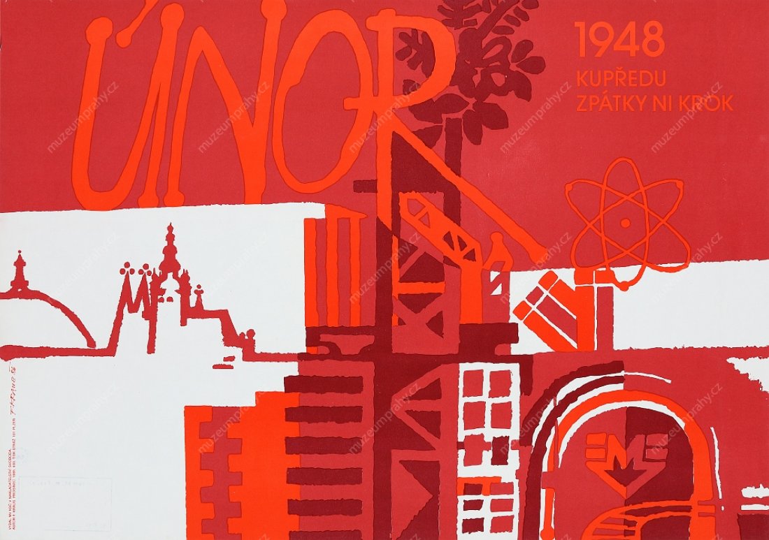Plakát Únor 1948. Kupředu zpátky ni krok! Ze souboru politických plakátů 1945-1948 vydaného ÚV KSČ a Muzeem Kl. Gottwalda v r. 1978. Tisk Severografia Děčín, autor A. Zábranský, původní vydavatel ÚAF NF, MMP H 118 061; Plakát k 36. výročí Vítězného února (1948–1984). Autor: J. Lidral. Vydalo Oddělení propagandy a agitace ÚV KSČ, tisk VČT 10 Pardubice, 1984, MMP H 129 672.